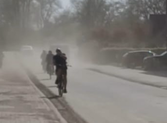 Maar ook de grote hoeveelheden stof vormen een probleem. De Hemelrijkstraat is bedekt met een dikke laag stof: op de daken, zonnepanelen, wagens…