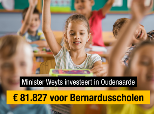 Vlaams minister van Onderwijs Ben Weyts (N-VA) investeert € 81.827 in Bernardusscholen in Oudenaarde. “Een investering in scholenbouw is een investering in onze onderwijskwaliteit. En dus in onze eigen toekomst”, zegt Vlaams minister van Onderwijs Ben Weyts.