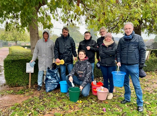 Intussen is de stad begonnen met de nodige herstellingswerken. Maar ook de lokale N-VA-afdeling liet zich niet onbetuigd. Afgelopen week trokken leden van het bestuur, gewapend met emmers, sponzen, borstels en véél goede wil naar de mooie begraafplaats tegenover de volkstuintjes in de Dijkstraat. In de gietende regen gaven ze de graven van de oudstrijders een grondige poetsbeurt en verwijderden ze waar mogelijk het opgeschoten onkruid.